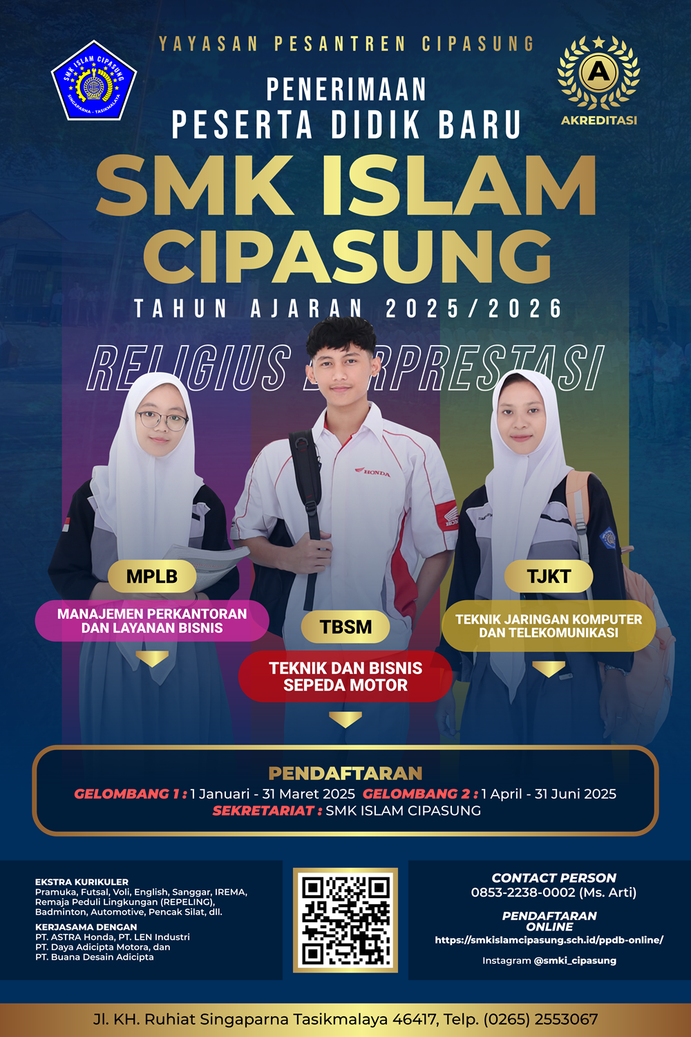 Pelaksanaan : Waktu : Lokasi : Pendaftaran dapat dilakukan secara online, atau dapat langsung datang ke Kampus SMK Islam Cipasung setiap hari ker...